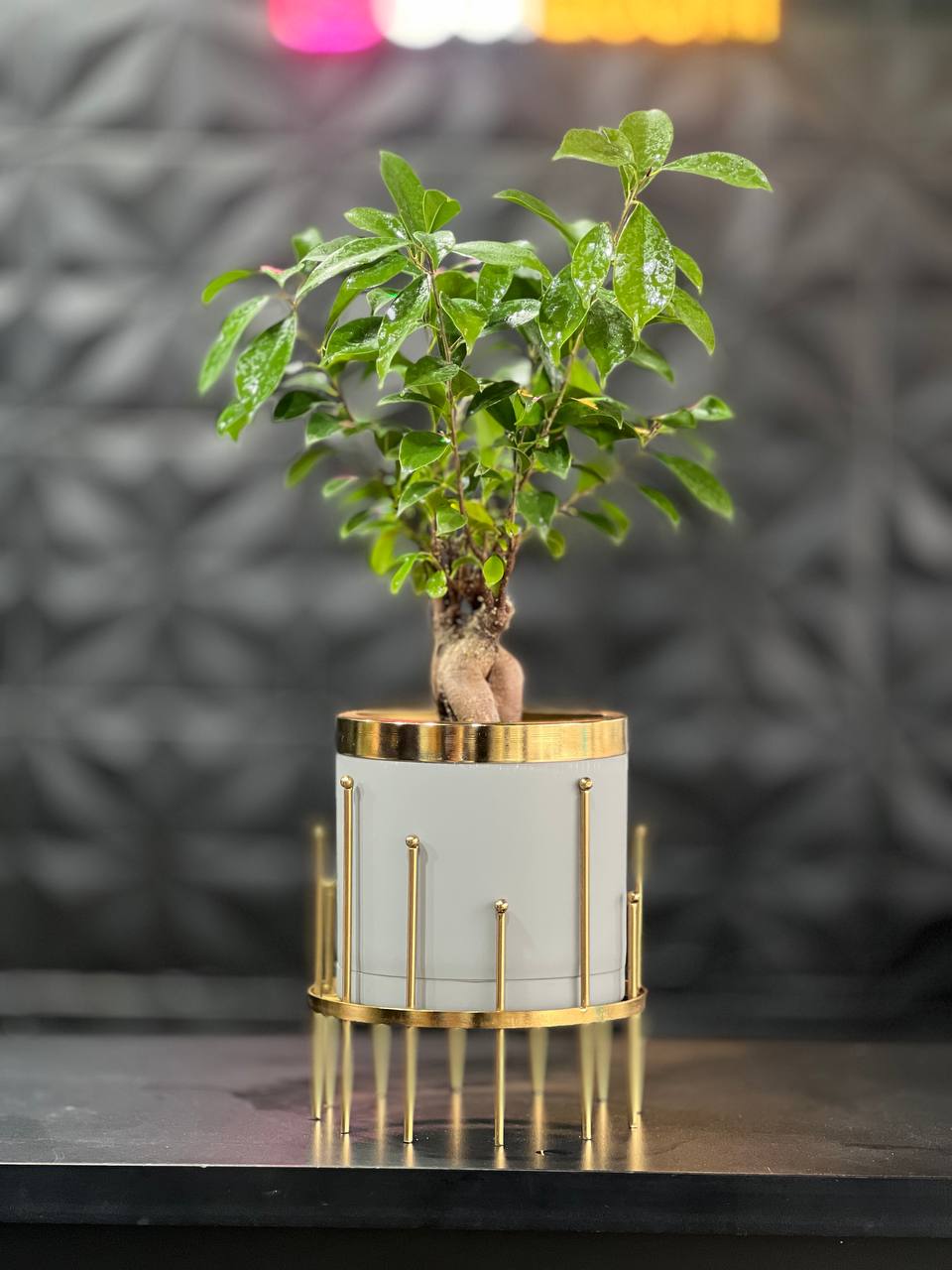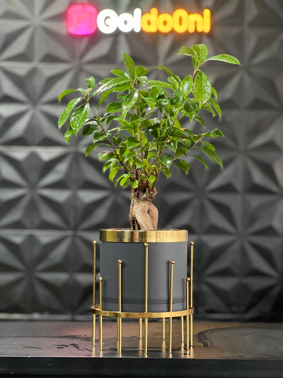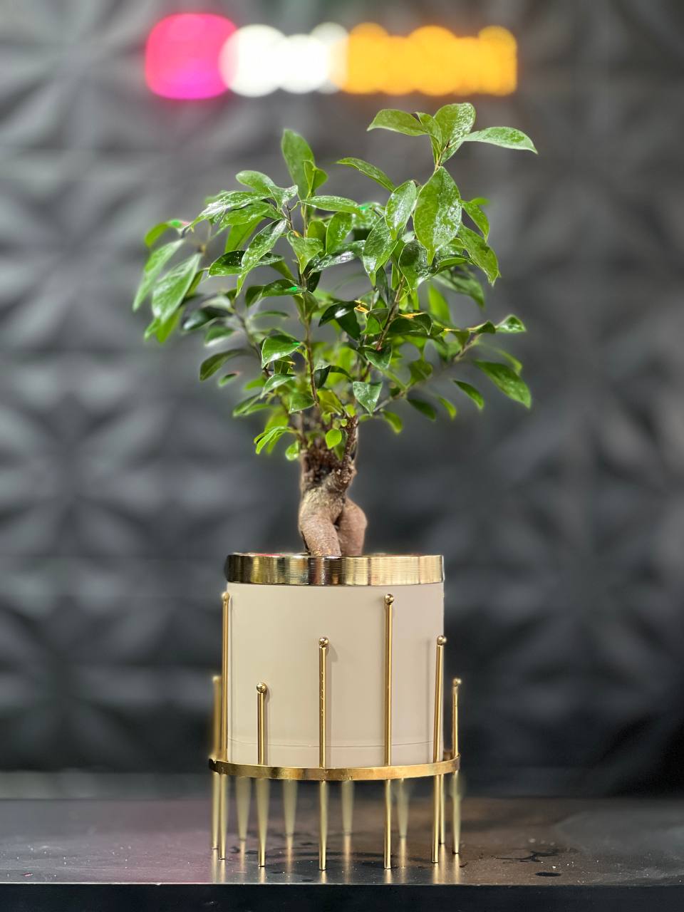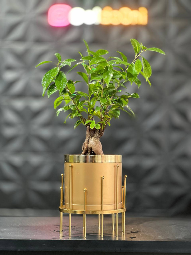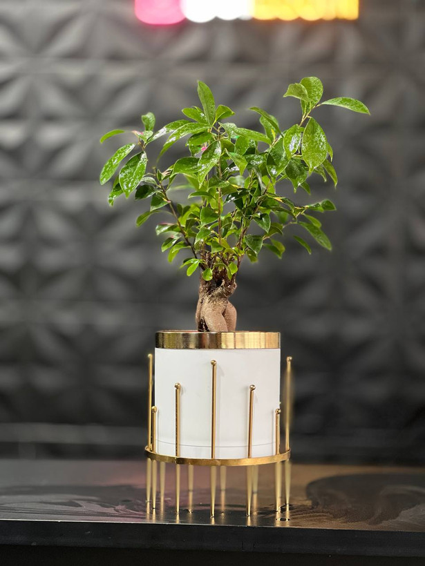 گلدان استوانه کوتاه پلیمری مهرنی به همراه حلقه طلایی