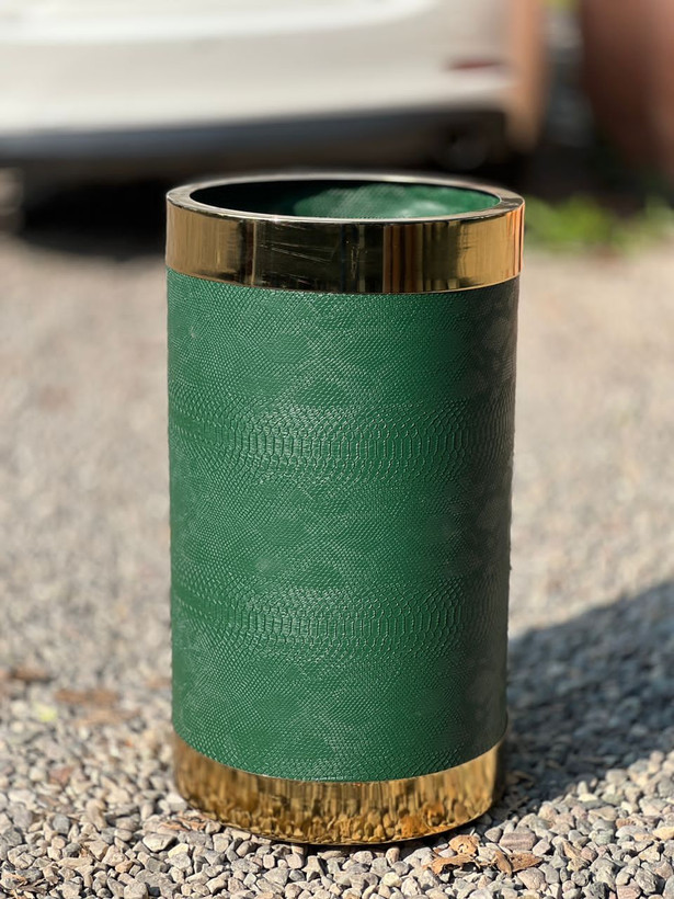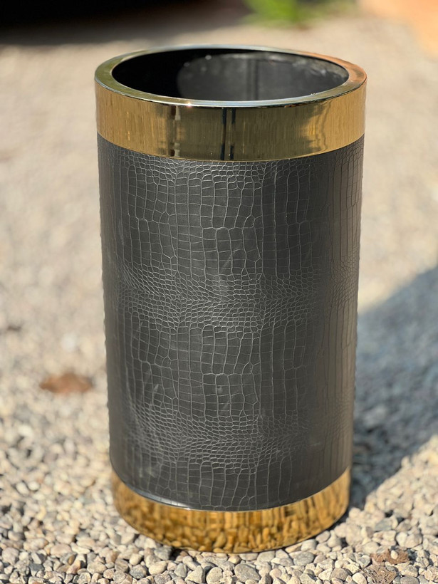 گلدان استوانه گالوانیزه با روکش چرم