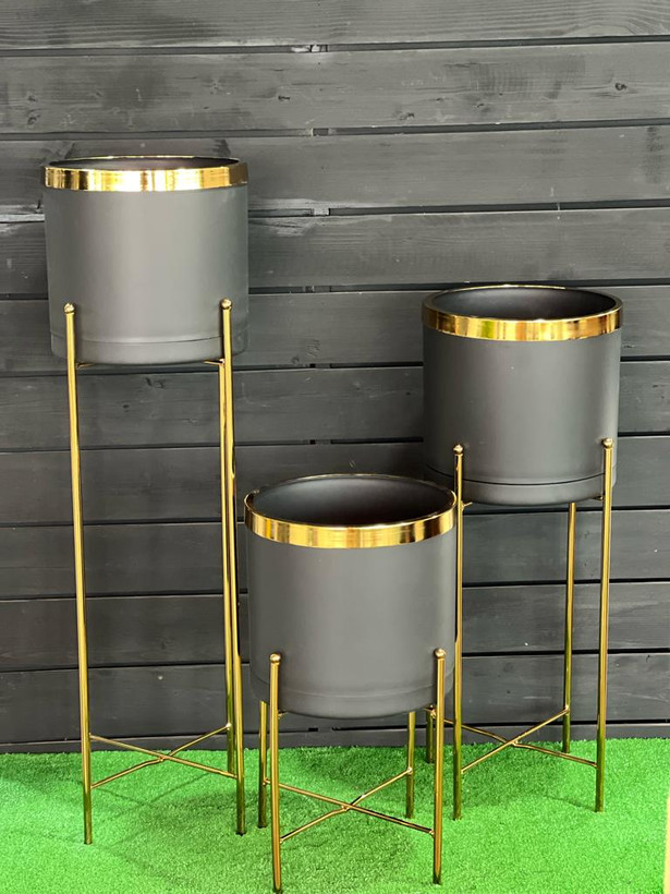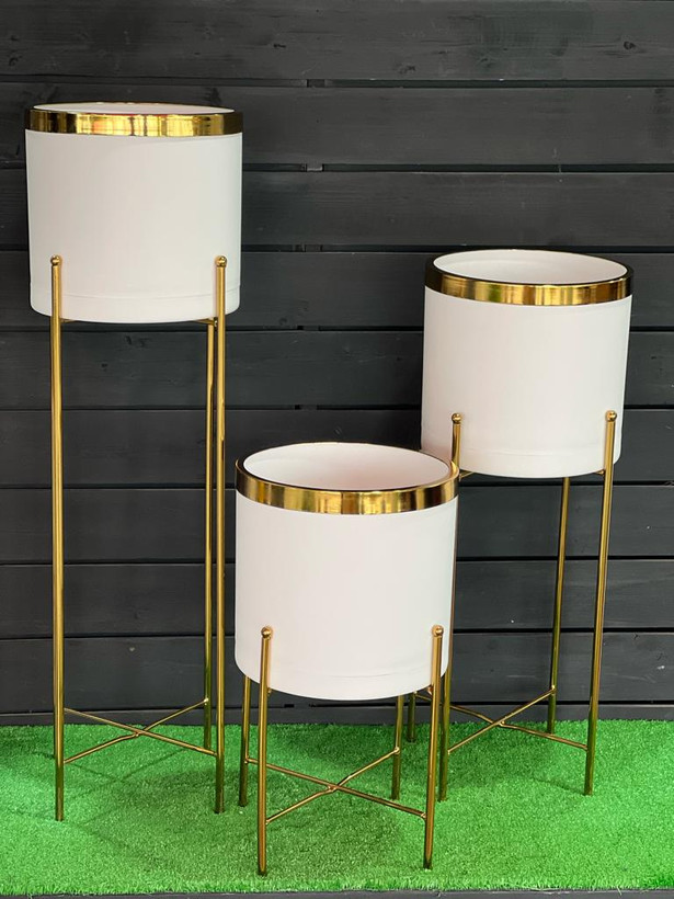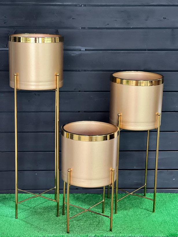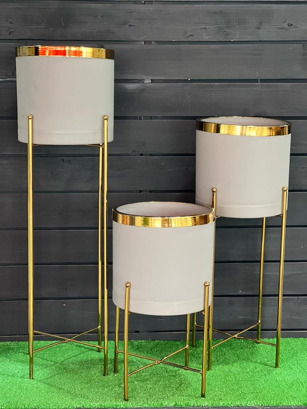 ست گلدون پلیمری قطر25با استند و لبه طلایی